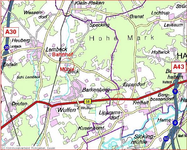 Rechts im Bild ein Stückchen der A31 (!) mit Abfahrt Lembeck: